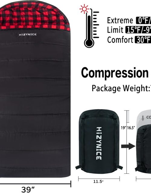 • Sale! 0 Degree Sleeping Bag 100% Cotton Flannel XXL for Adults Big and Tall Cold Weather Winter Zero Degree Camping,Free Compression Sack